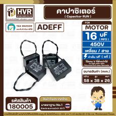 คาปาซิเตอร์ ( Cap Run ) 16 uF 450V ( เหลี่ยม สาย ) ( Adeff ) ( 38 x 58 x 26 mm.) #180005