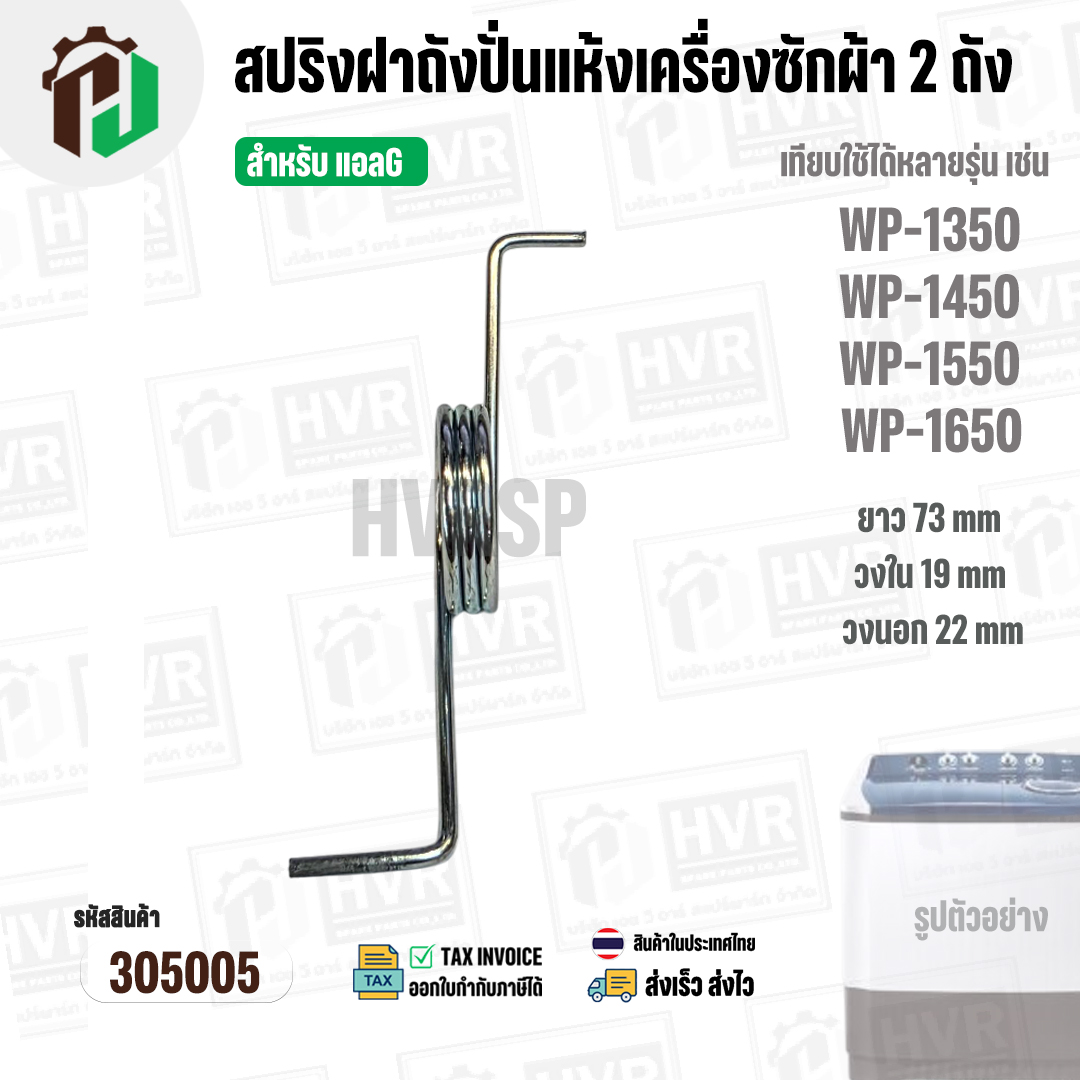 สปริงฝาถังปั่นแห้งเครื่องซักผ้า 2 ถัง LG ( แอลจี ) รุ่น WP-1350 , WP1450 , WP-1550 , WP-1650 ( เทียบใช้ได้หลายรุ่น ) ( ยาว 73 mm วงใน 19 mm วงนอก 22 mm )