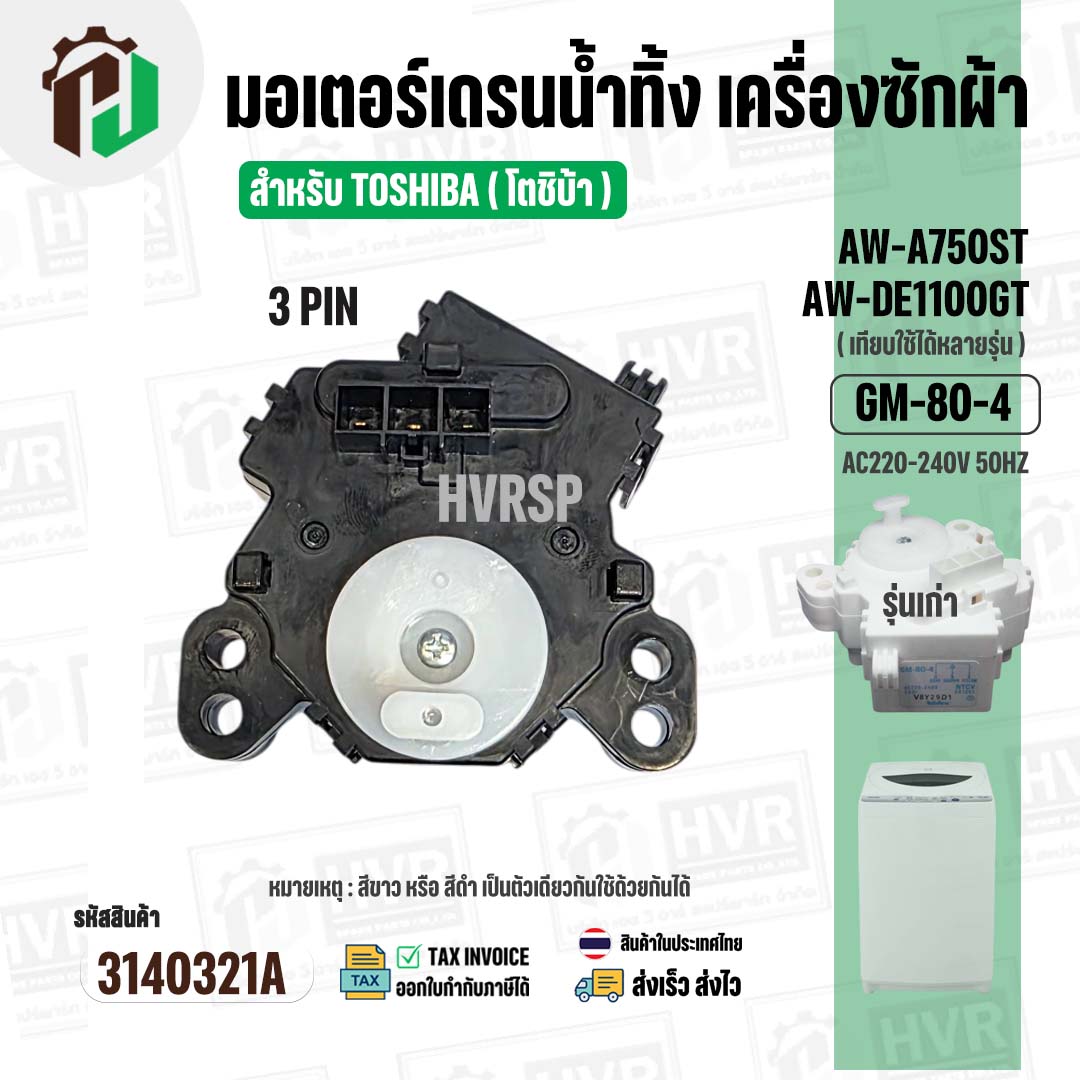 > อะไหล่เครื่องซักผ้า > มอเตอร์เดรนน้ำทิ้ง > มอเตอร์เดรนน้ำทิ้ง TOSHIBA (โตชิบ้า) AW-A750ST , AW-A820MT AW-DE 1100 GT ( 3 PIN ) และรุ่นอื่นๆ #GM-80-4 (No.3140321 มอเตอร์เดรนน้ำทิ้ง สำหรับ TOSHIBA AW-A750ST , AW-DE 1100 GT ( 3 PIN ) ( แท้ ) ( GM-80-4 ) #3140321A