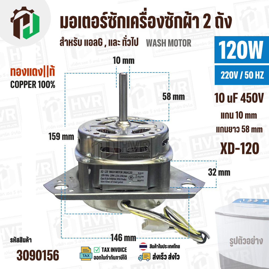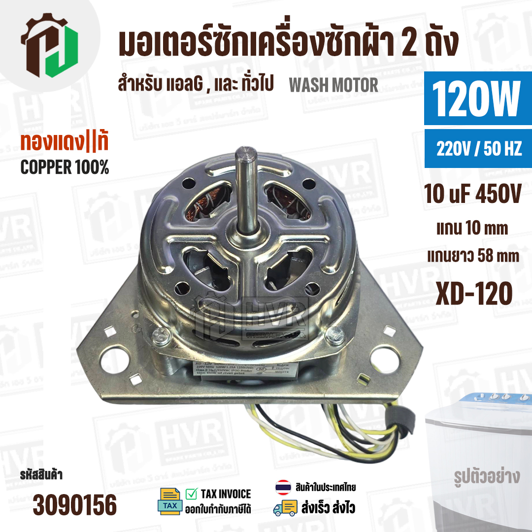 มอเตอร์ซักเครื่องซักผ้า LG 120W 220V 10 uF แกน 10 mm แกนยาว 58 mm ( XD-120 ) ( ทองแดง ) #อะไหล่เครื่องซักผ้า #3090156