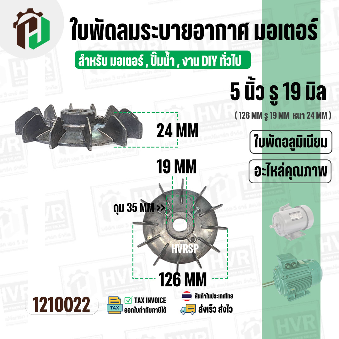 ใบพัดลมมอเตอร์ ใบพัดลมปั๊มน้ำ ( อลูมิเนียม ) 5 นิ้ว รู 19 mm. ( ขันสกูล ) ( 126 mm. x 19 mm. ) ( ใบพัดลมระบายอากาศ ) #1210022