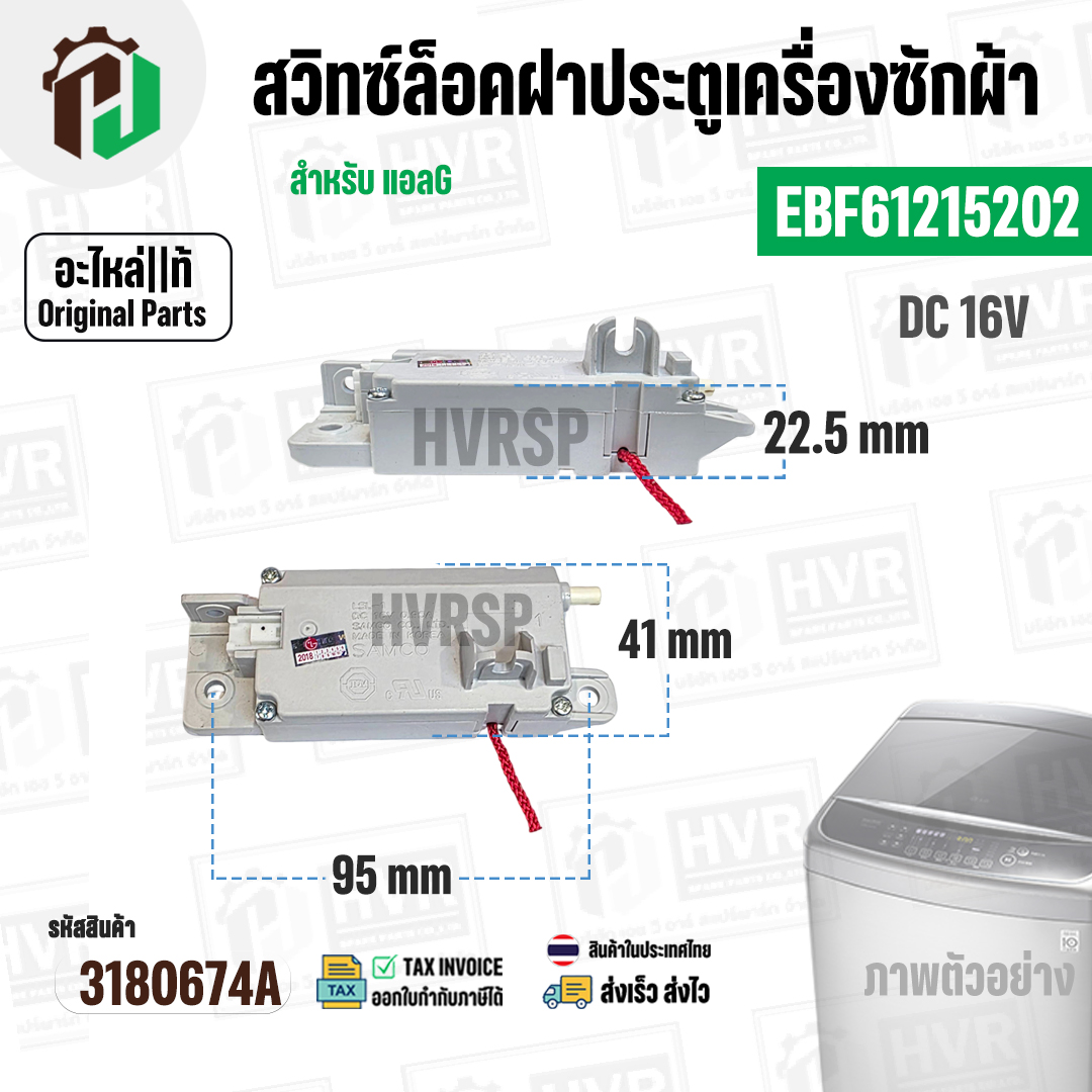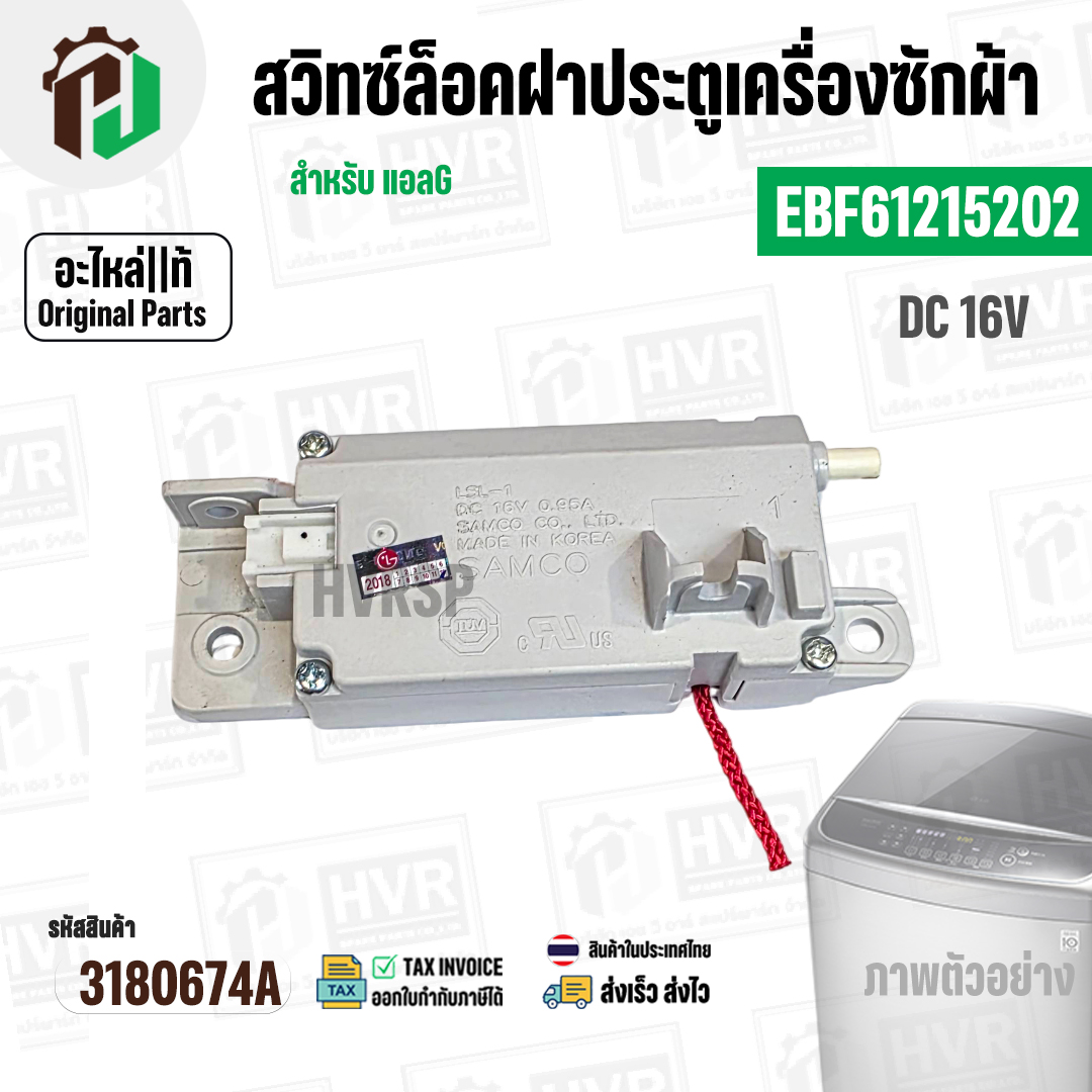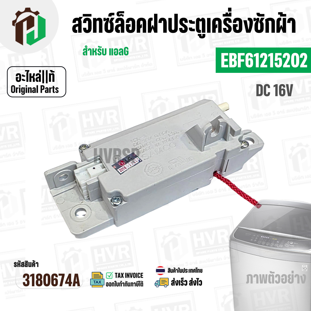 สวิทซ์ล็อคฝาประตูเครื่องซักผ้า LG ( แอลจี ) INVERTER DC 16V 0.95A #EBF61215202 ( แท้ ) #3180674A