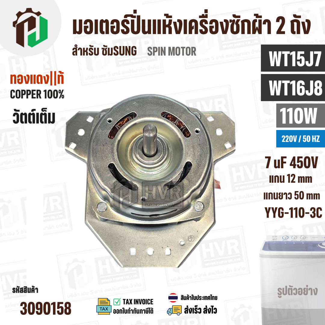 มอเตอร์ปั่นแห้ง SAMSUNG WT15J7 , WT16J8 ( 13-14 kg.) 110W 220V 7 uF ( YYG-110-3C ) ( ทรงคางหมู ) ( ทองแดงแท้ ) #อะไหล่เครื่องซักผ้า #3090158