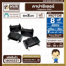 > อะไหล่มอเตอร์ > คาปาซิเตอร์ (RUN ) > คาปาซิเตอร์ ( Cap Run ) 8 uF 450V ( เหลี่ยม เสียบ 4 ขา ) ( SHIZUKI ) ( แท้ ) ( 20 x 30 x 58 mm. )