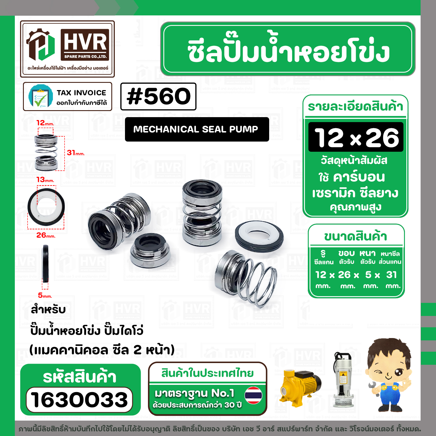 ซีลปั๊มน้ำหอยโข่ง ไดโว่ #12 x 26 mm.x 2 หน้า ( แมคคานิคอล ซีล) #208 ( 1 ตัว )