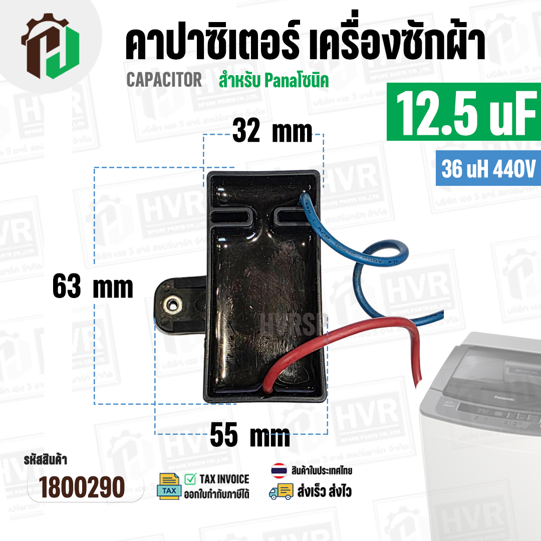 คาปาซิเตอร์ ( Cap Run ) 12.5 uF 36 uH 440V ( เหลี่ยม สาย ) ( สำหรับ Panasonic ) ( 60 x 63 mm. ) #1800290