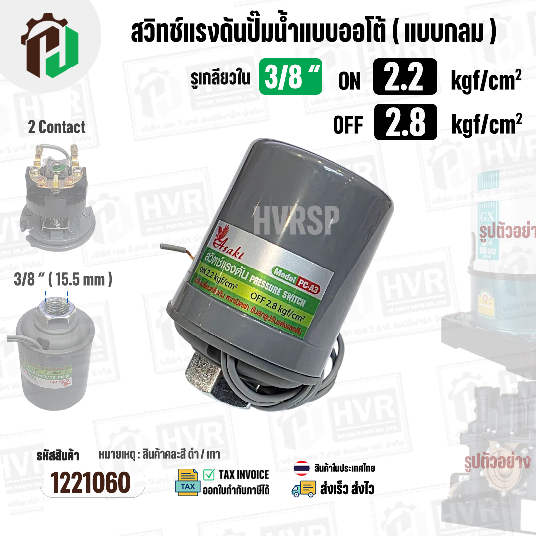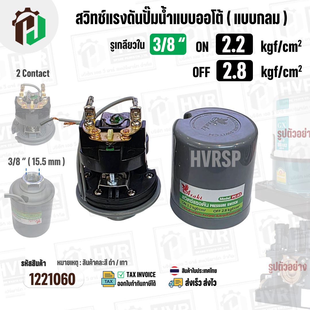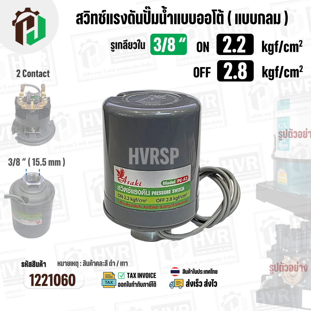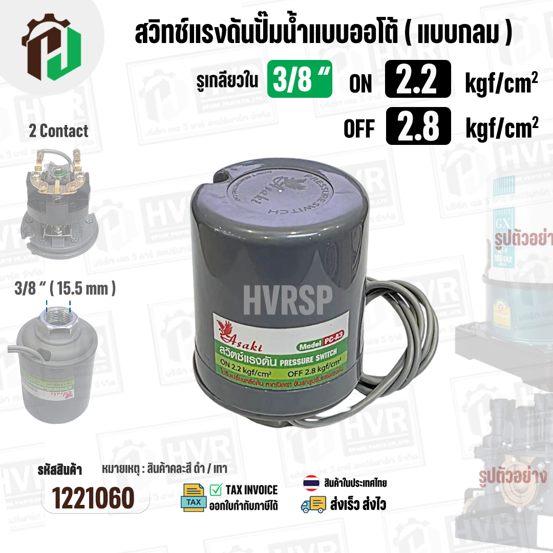 สวิทซ์ปั้มน้ำออโต้ ( แบบกลม ) ON 2.2 kgf/cm2 / OFF 2.8 kgf/cm2 รูเกลียวใน 3/8" ( 2 Contact ) ( Asaki ) #M