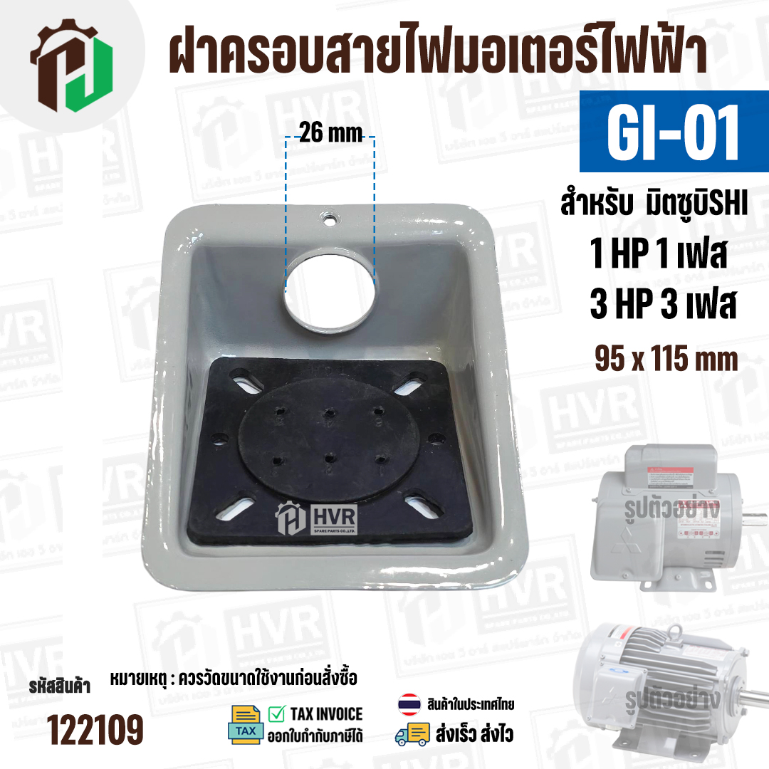 ฝาครอบสายไฟมอเตอร์ MITSUBISHI ( มิตซู ) 1 HP ( 1 เฟส ) / 3 HP ( 3 เฟส ) ( GI-01 ) ( 95 x 115 mm ) #122109
