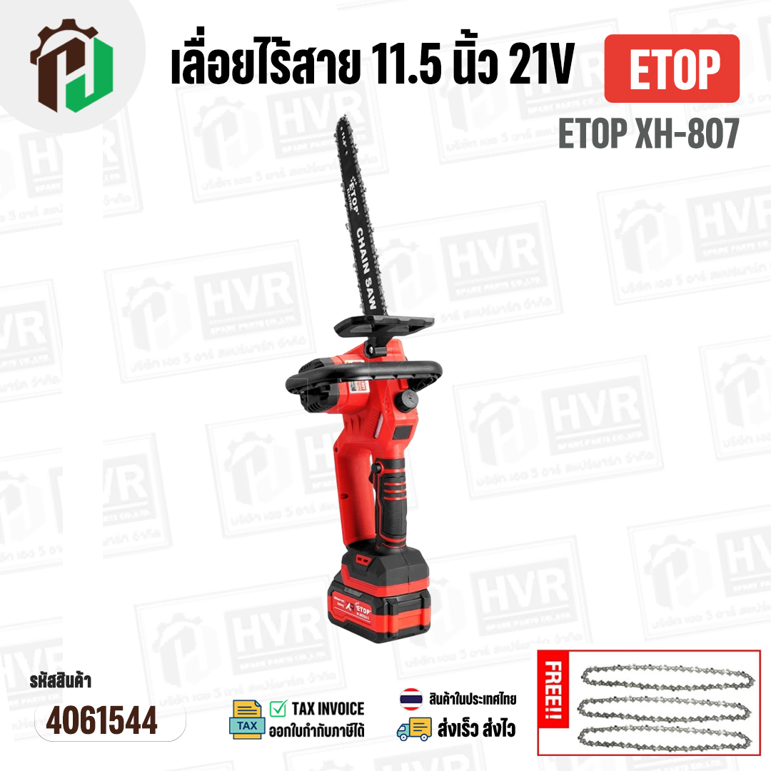 > เครื่องมือช่างขายส่ง > เลื่อยไฟฟ้า > เลื่อยไร้สาย 11.5 นิ้ว ETOP XH-807 ( 21V ) ( 1200W ) ( มอเตอร์บัสเลส ไร้แปรงถ่าน Brushless Motor )