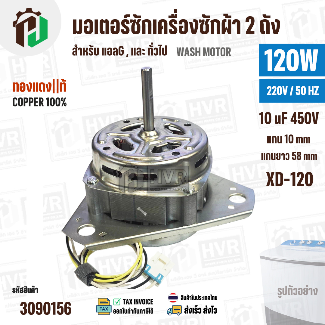 มอเตอร์ซักเครื่องซักผ้า LG 120W 220V 10 uF แกน 10 mm แกนยาว 58 mm ( XD-120 ) ( ทองแดง ) #อะไหล่เครื่องซักผ้า #3090156