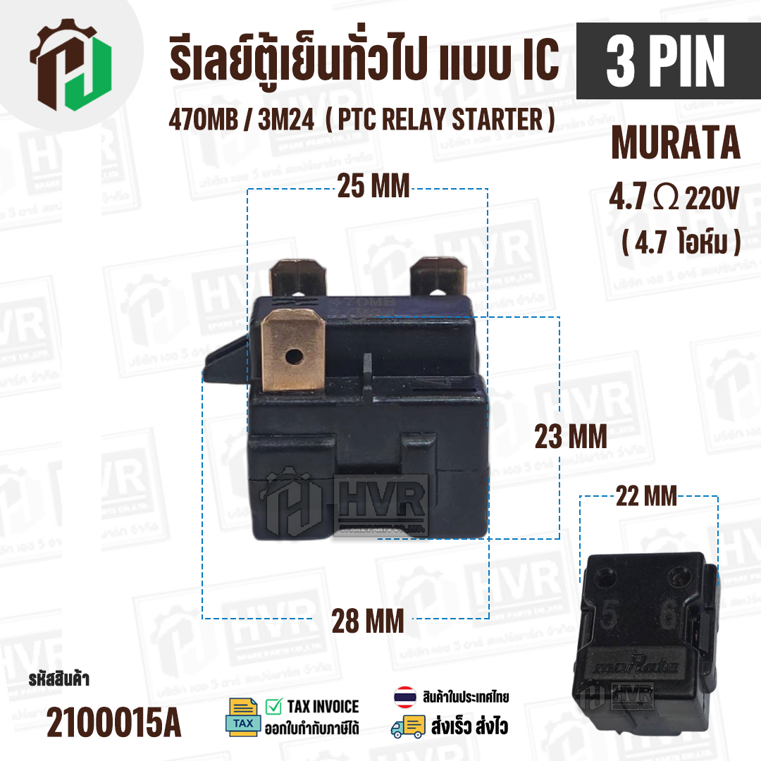 รีเลย์ตู้เย็น แบบ IC 3 ขา ( 3 PIN ) Murata 4.7 Ω 220V 470MB / 3M24 ( PTC RELAY STARTER ) #2100015A
