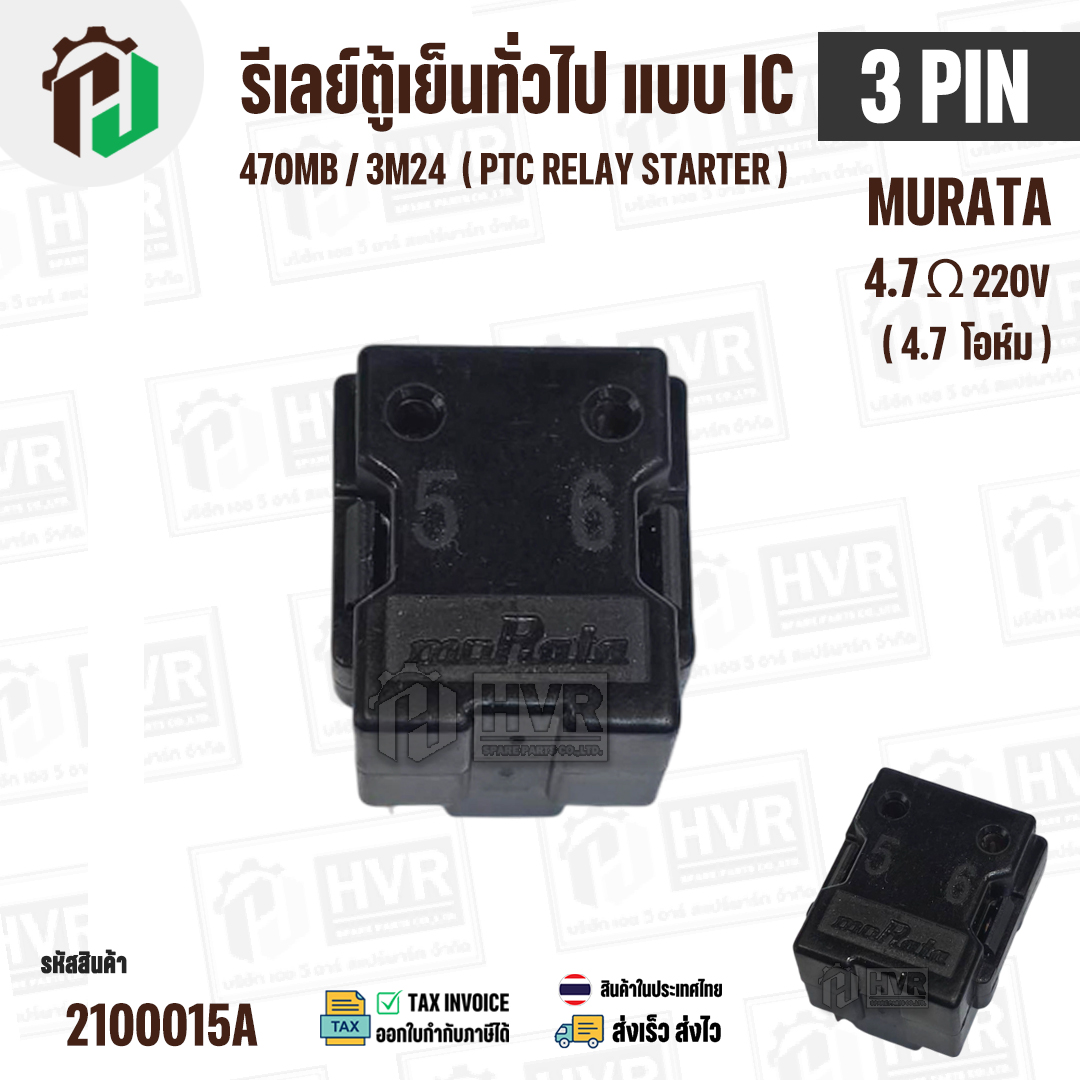 > อะไหล่ตู้เย็น,ตู้แช่ > รีเลย์ตู้เย็น > รีเลย์ตู้เย็น แบบ IC 3 ขา ( 3 PIN ) Murata 4.7 Ω 220V 470MB / 3M24 ( PTC RELAY STARTER )