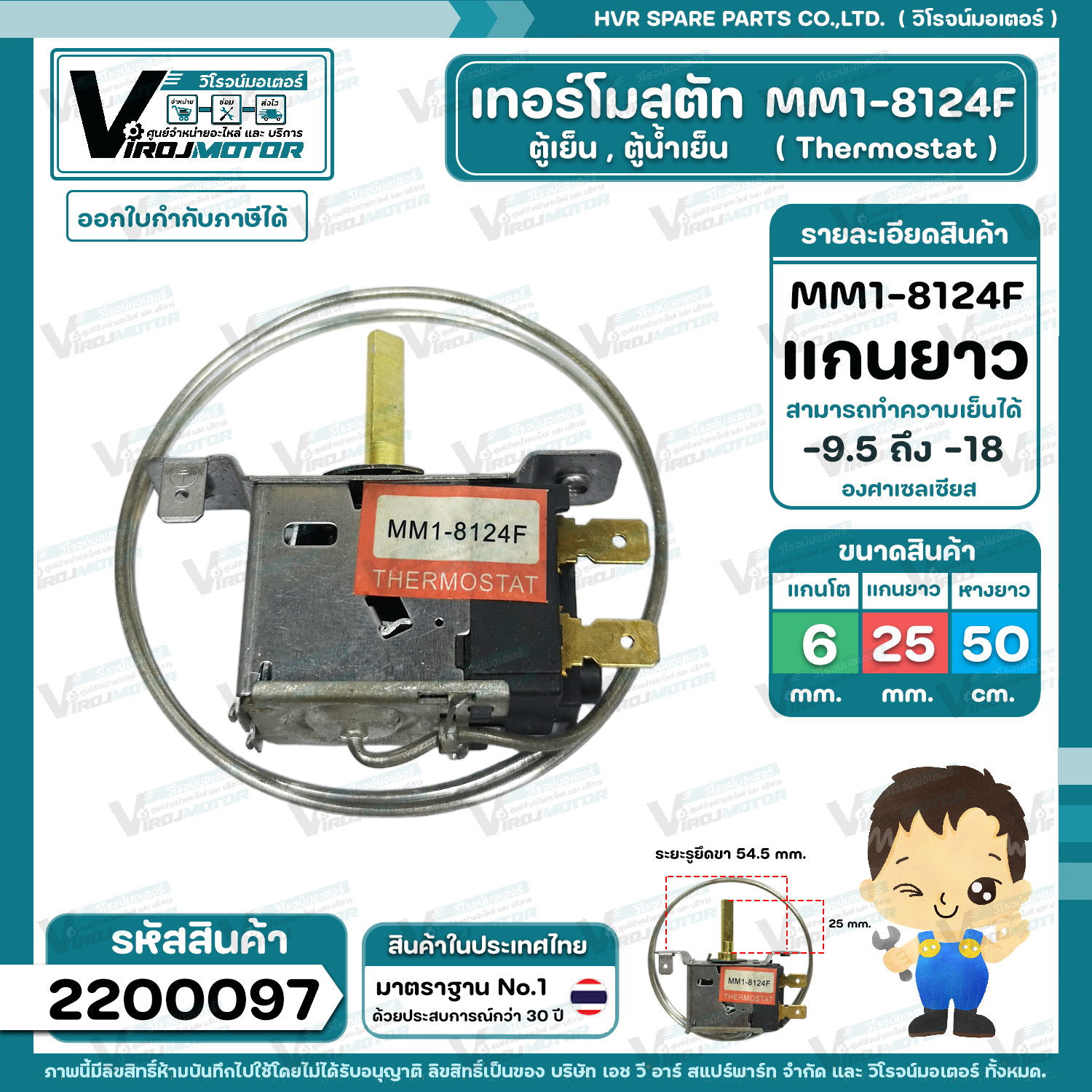 #อะไหล่ตู้เย็น #เทอร์โมสตัทตู้เย็น #เทอร์โมสตัทตู้น้ำเย็น #เทอร์โมสตัทแกนยาว #เทอร์โมสตัทMM1-8124F