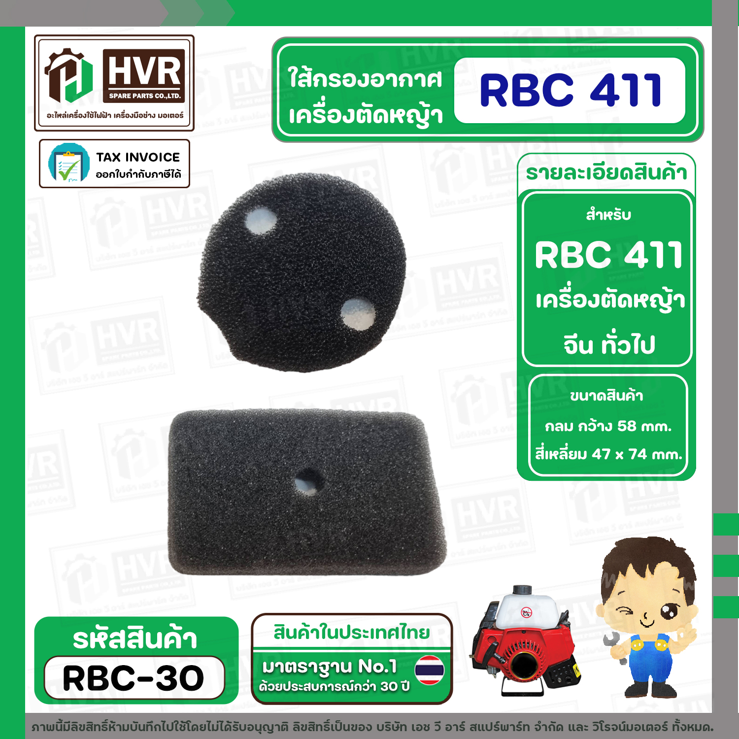 > อะไหล่เครื่องตัดหญ้า > ใส้กรอกอากาศ > ใส้กรองอากาศ เครื่องตัดหญ้า รุ่น RBC 411 ( 1 ชุด : 2 ชิ้น ) #RBC-30