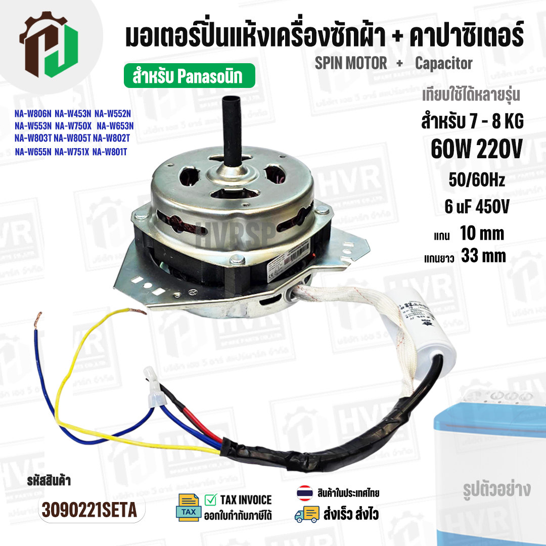 มอเตอร์ปั่นแห้งเครื่องซักผ้า Panasonic NA-W653N , NA-W750X , NA-W803T ,NA-W805T , NA-W806N ( 7 - 8 KG ) 60W มาพร้อม Cap 6 uf (ทรงคางหมู ) ( AL ) #3090221SETA