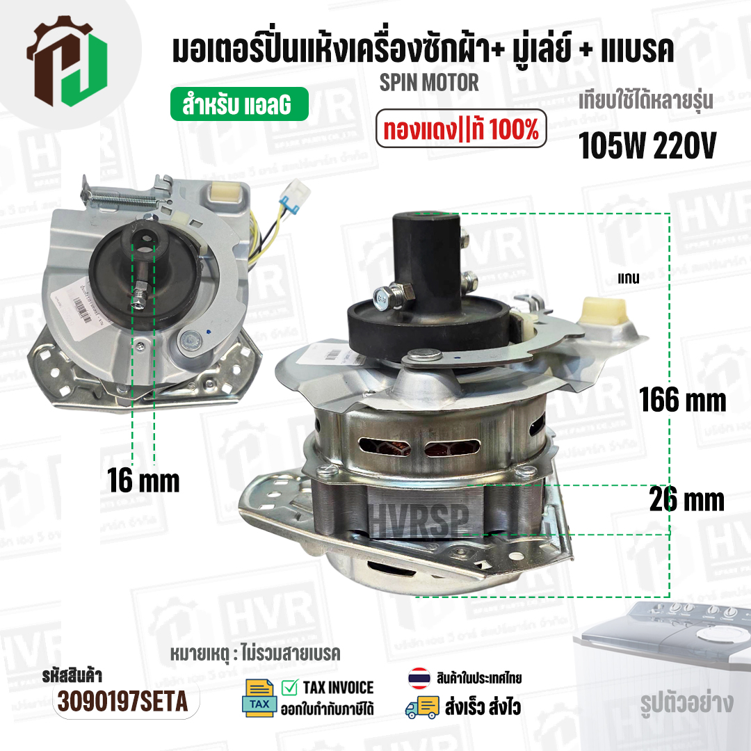 >> ในใชุดประกอบไปด้วย : มอเตอร์ปั่นแห้ง + มู่เลย์ยึดแกนถังปั่นแห้ง + จานเบรค ( ไม่รวมสายดึงเบรค )
