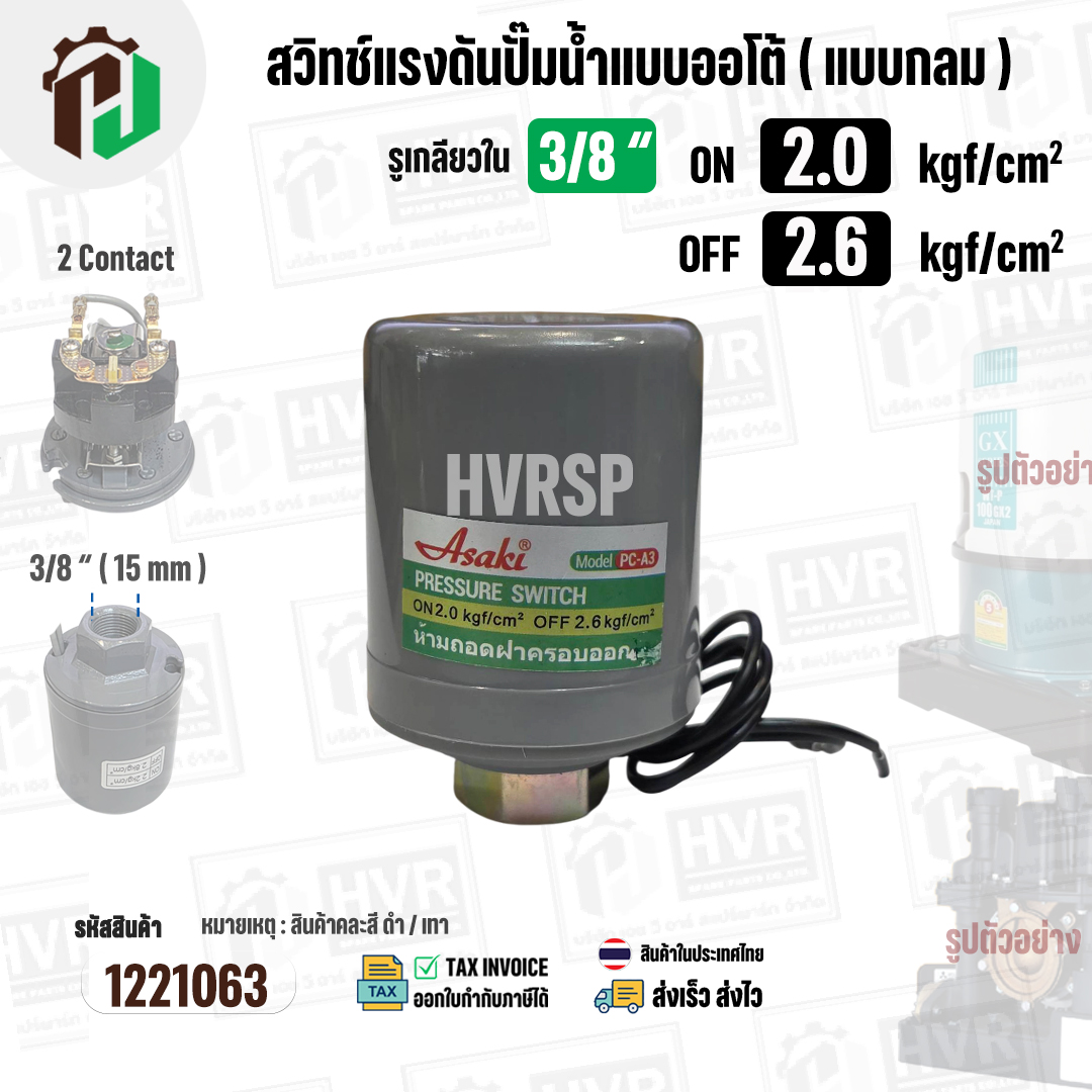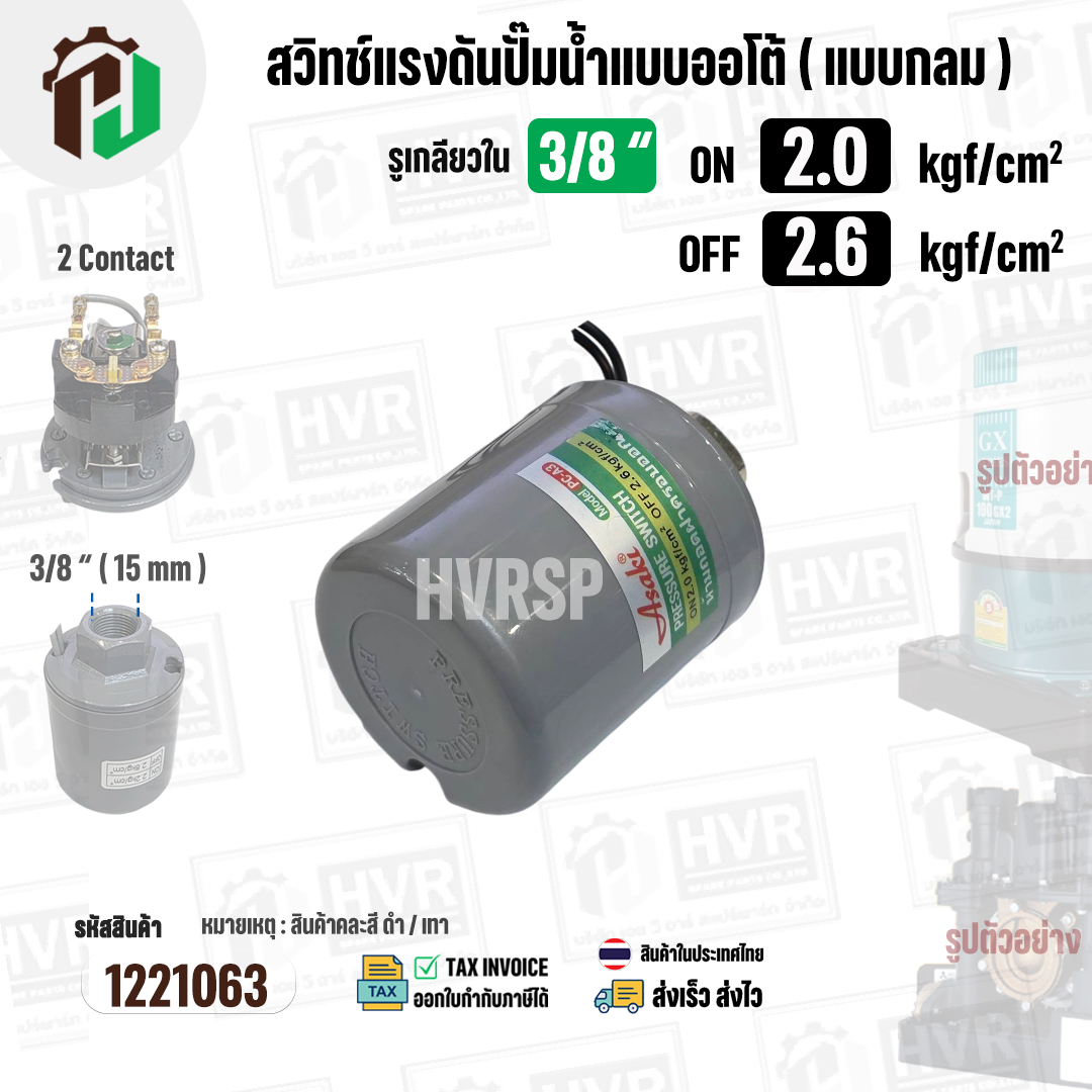 สวิทซ์ปั้มน้ำออโต้ ( แบบกลม ) ON 2.0 kgf/cm2 / OFF 2.6 kgf/cm2 รูเกลียวใน 3/8" ( 2 Contact ) ( Asaki ) #H #1221063