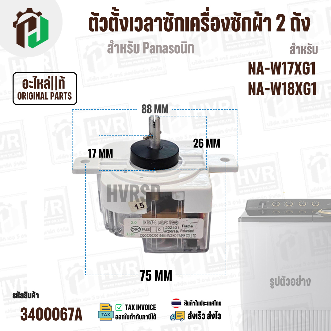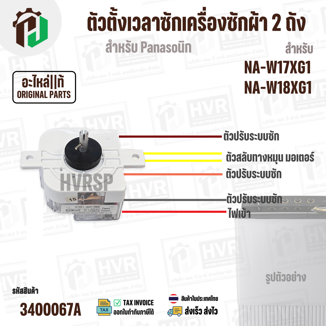 ตัวตั้งเวลาลานซักเครื่องซักผ้า Panasonic NA-W17XG1 , NA-W18XG1 ( 6 สายเหลี่ยมใส ) ( 35 นาที ) #AXW110201700185 ( แท้ ) #3400067A