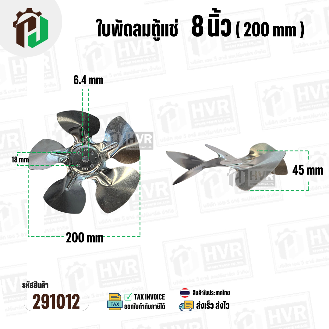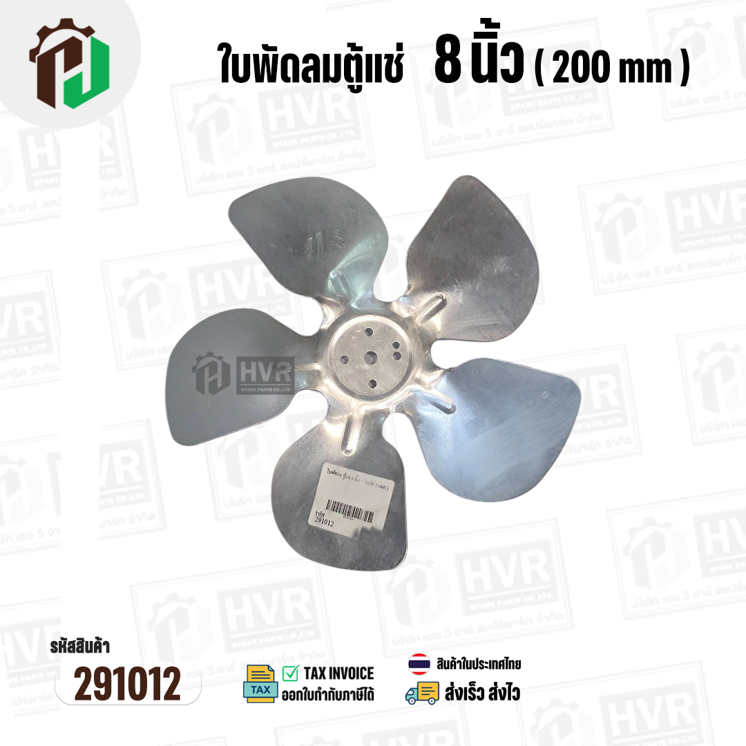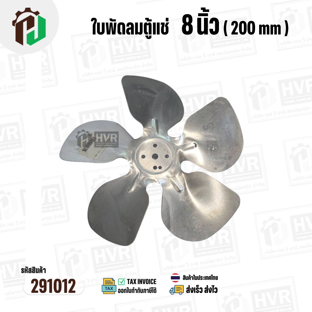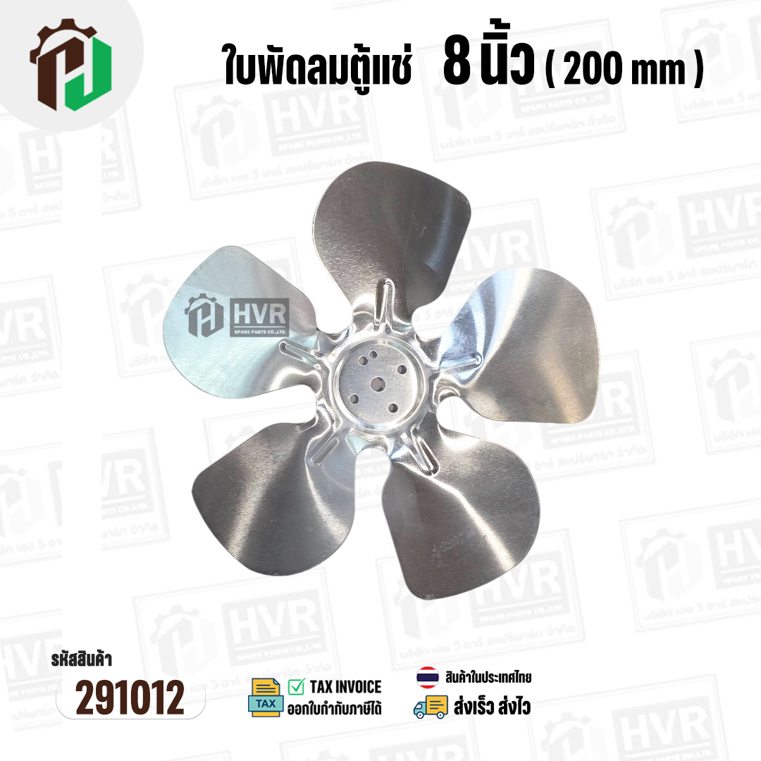 ใบพัดลมตู้แช่ 8 นิ้ว ( 20 cm ) รูกลาง 6.4 mm ( ใบพัด 5 แฉก ) ( อลูมิเนียม ) #อะไหล่ตู้แช่ #291012