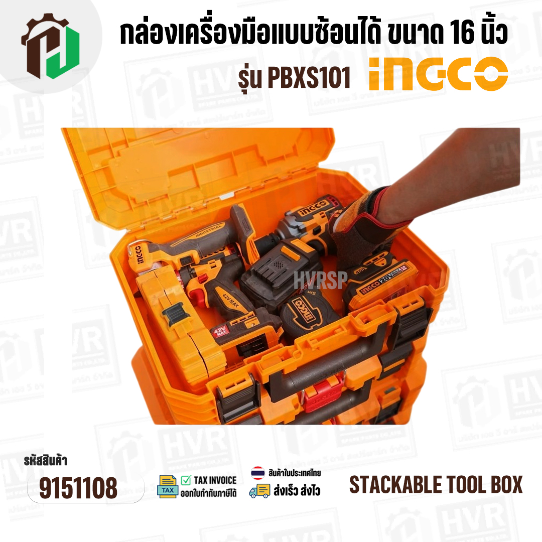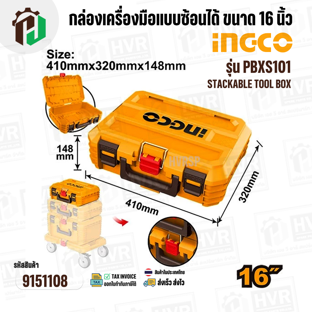 > อะไหล่เครื่องมือช่าง > กล่องเครื่องมือ > กล่องเครื่องมือแบบซ้อนได้ ขนาด 16 นิ้ว ( INGCO ) รุ่น PBXS101 ( Stackable Tool Box )