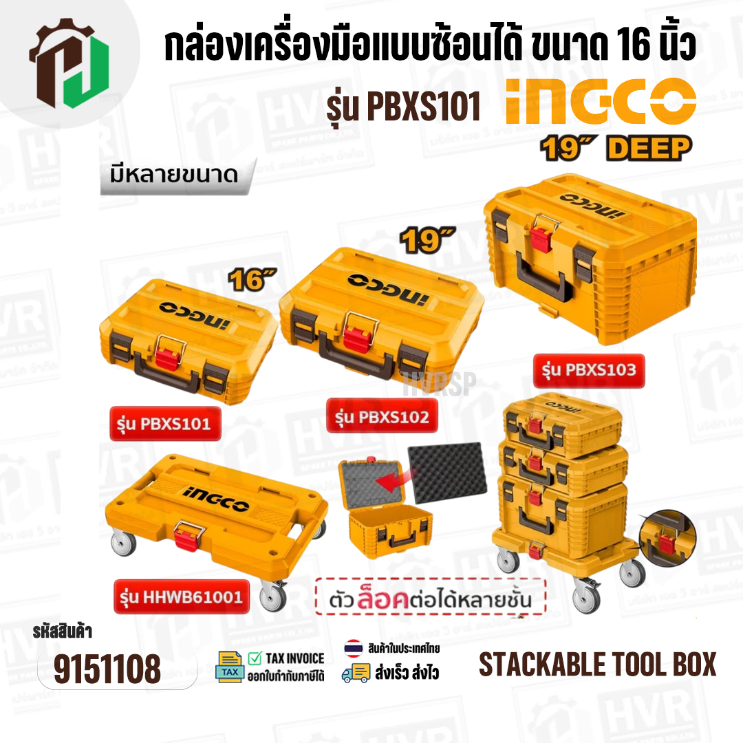 INGCO กล่องเครื่องมือแบบซ้อนได้ (Stackable Tool Box) และฐานวางกล่องเครื่องมือ รถเข็นมือพับ