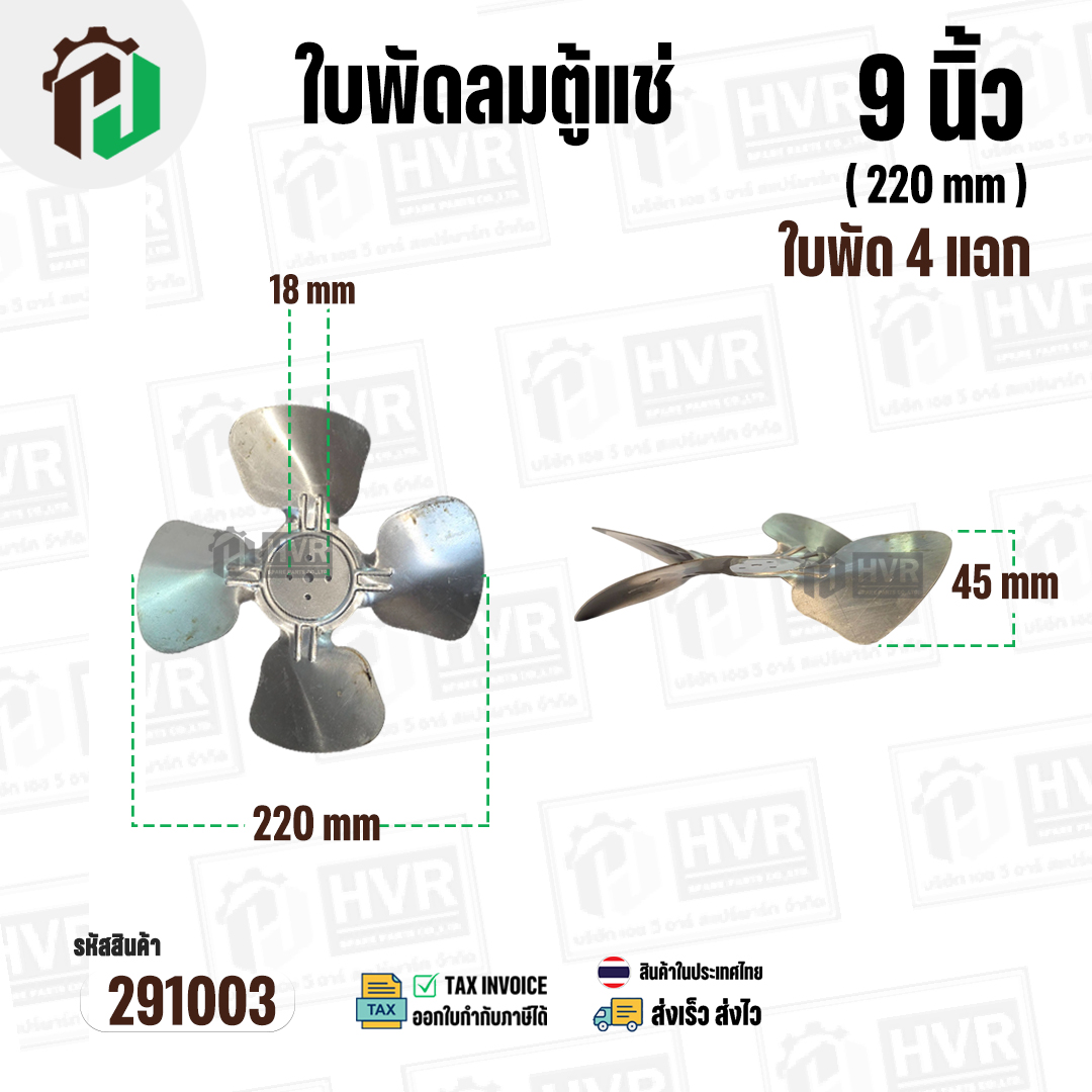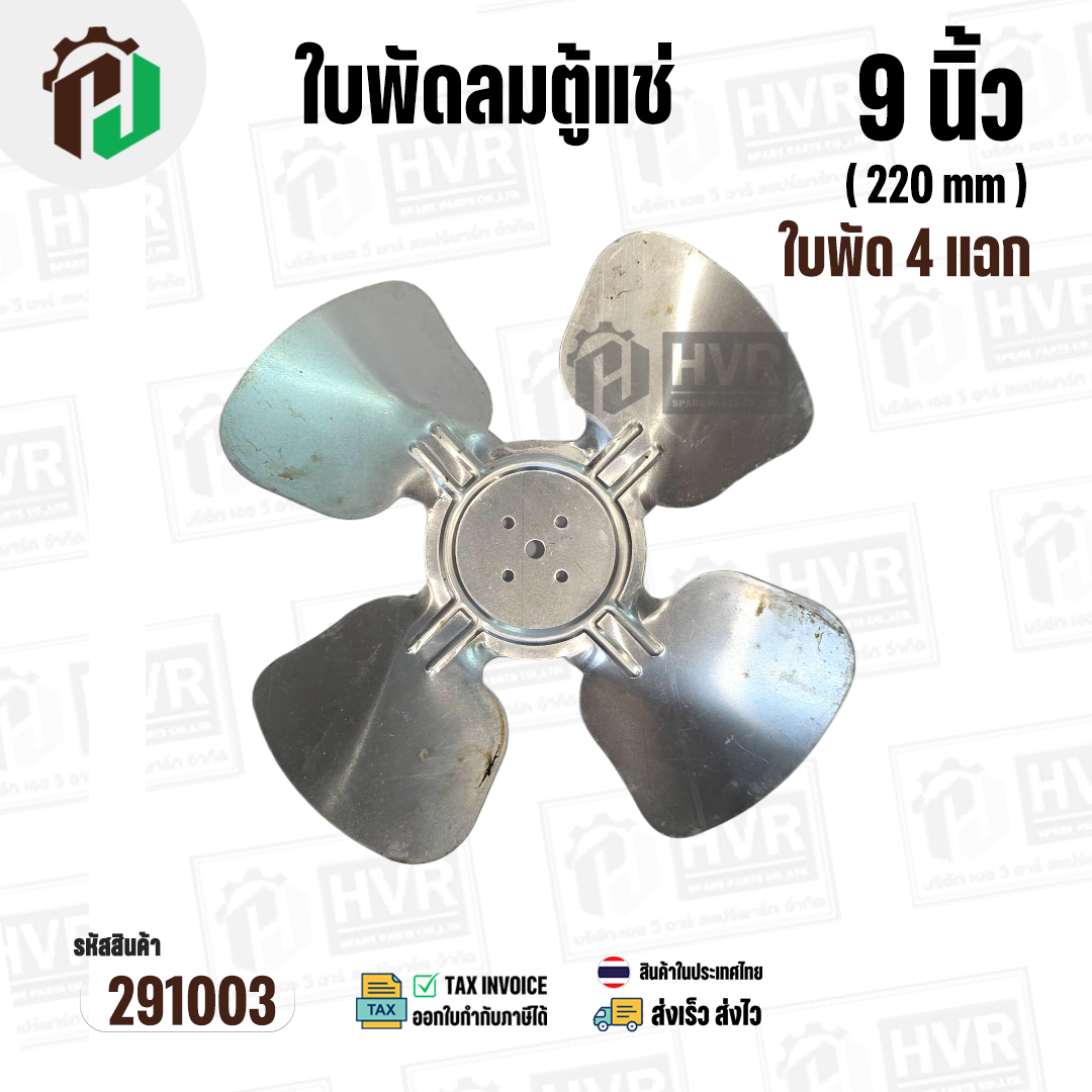 ใบพัดลมตู้แช่ 9 นิ้ว ( 22 cm ) รูกลาง 6.4 mm ( ใบพัด 4 แฉก ) ( อลูมิเนียม ) #อะไหล่ตู้แช่ #291003